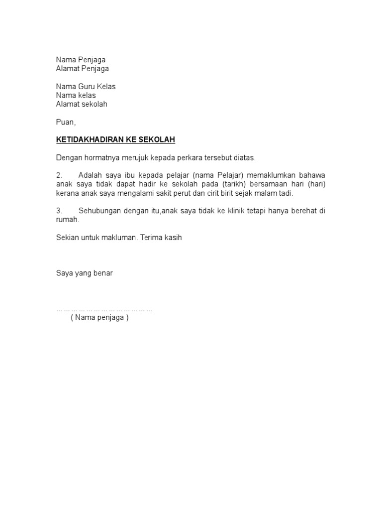 Download Contoh Surat Tidak Hadir Ke Sekolah 2020 Portal Malaysia
